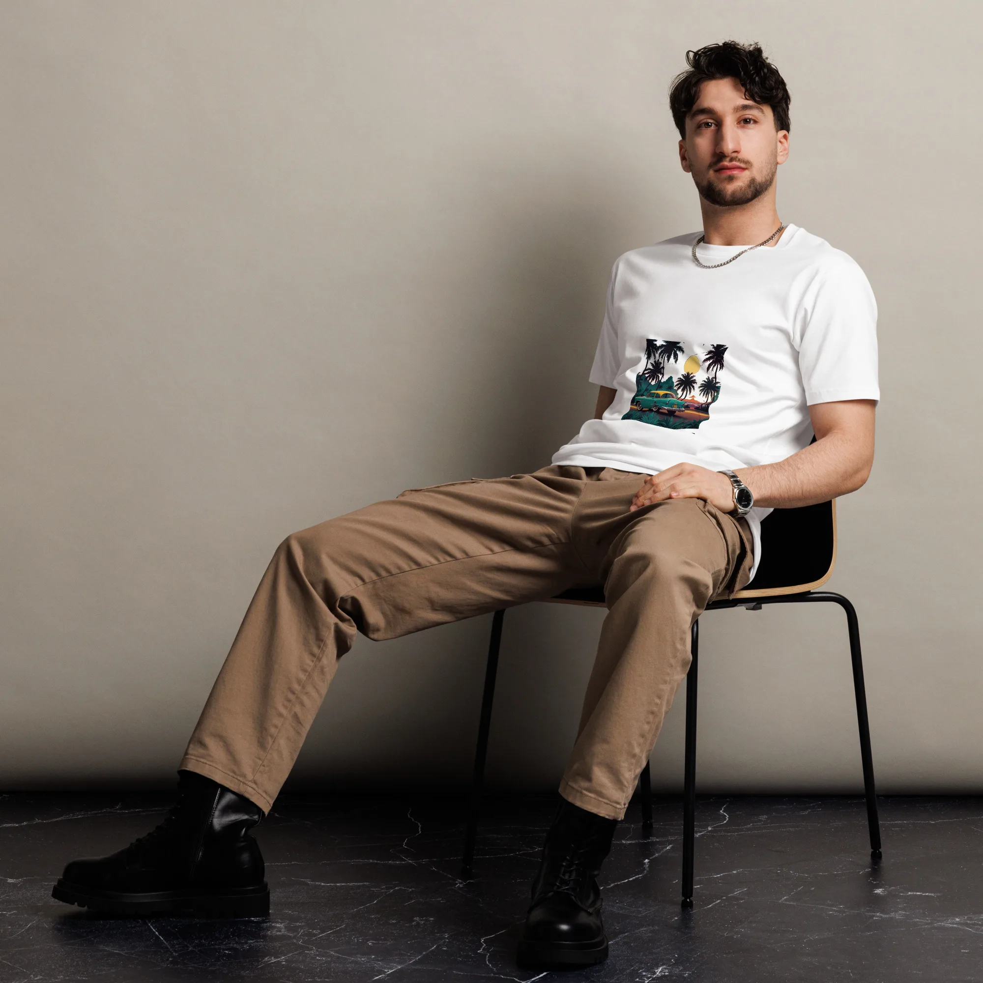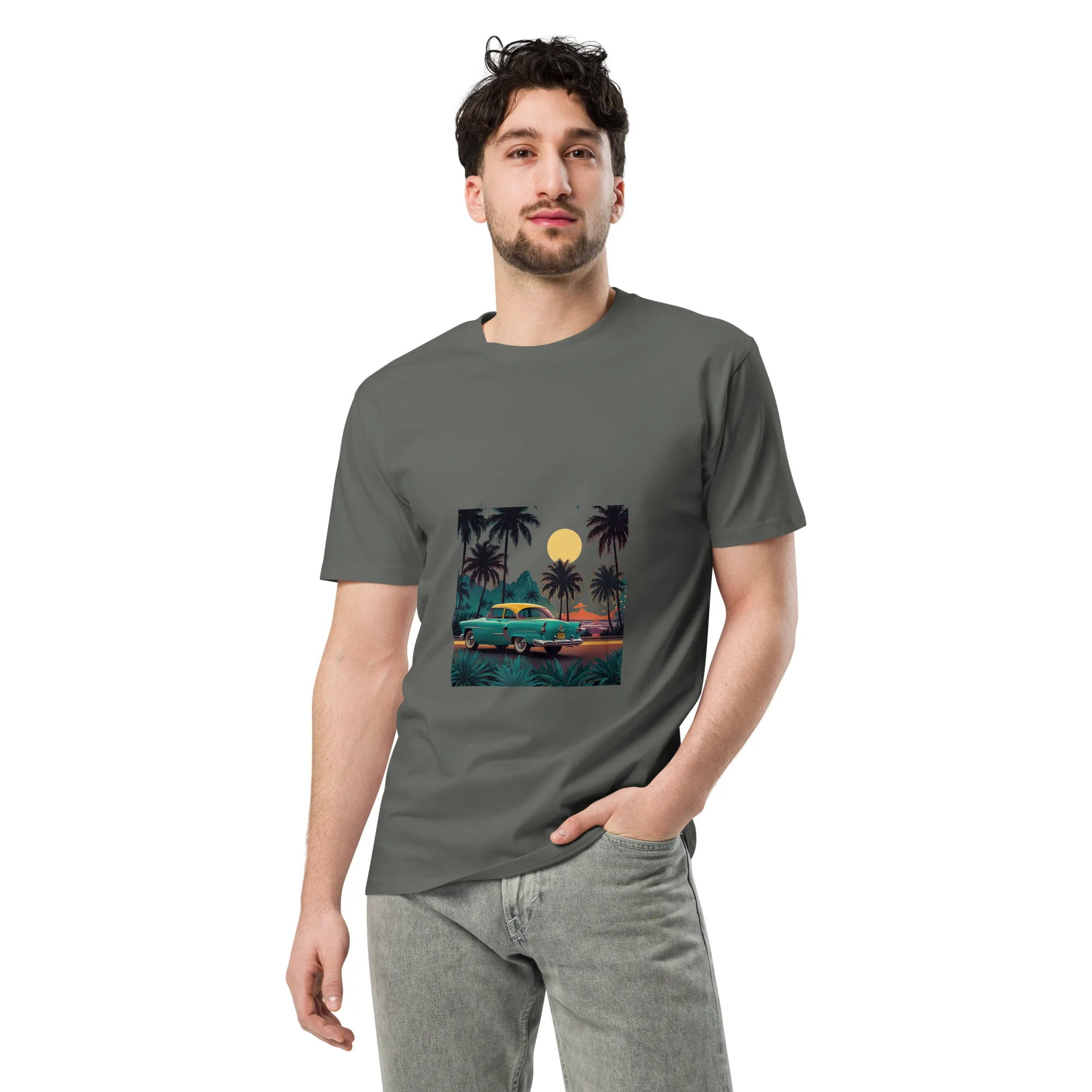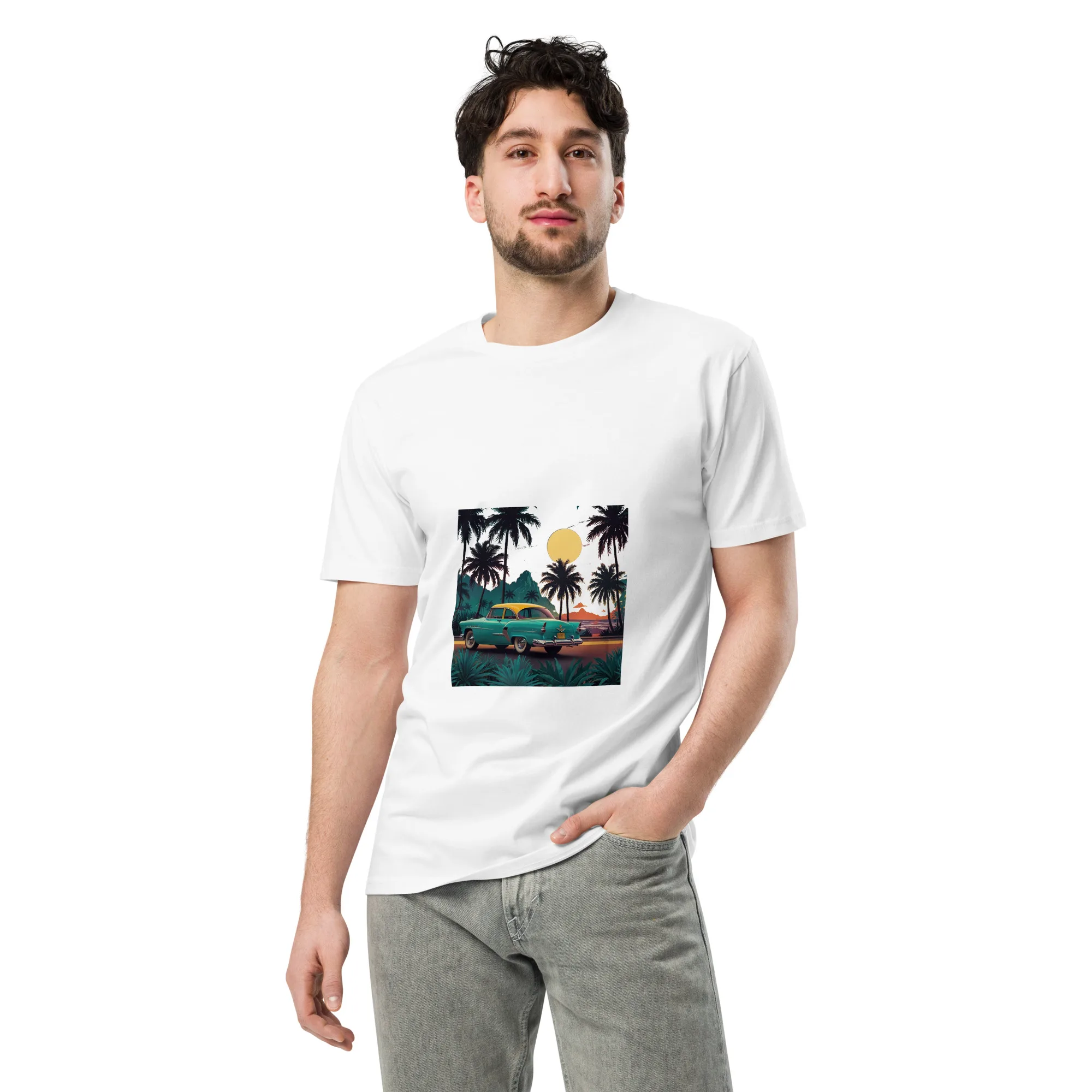 A light-toned canvas that carries the soul of endless summers: a winding coastal road, a classic vintage car, palm leaves framing the scene. It’s not just a graphic, it’s an invitation to a lifestyle where the ocean hums as your soundtrack, and freedom feels like wind through open windows.